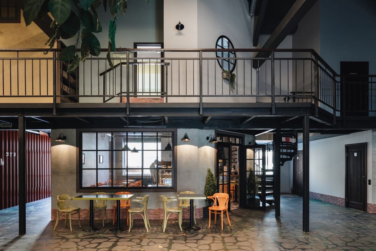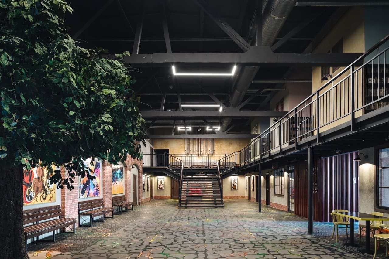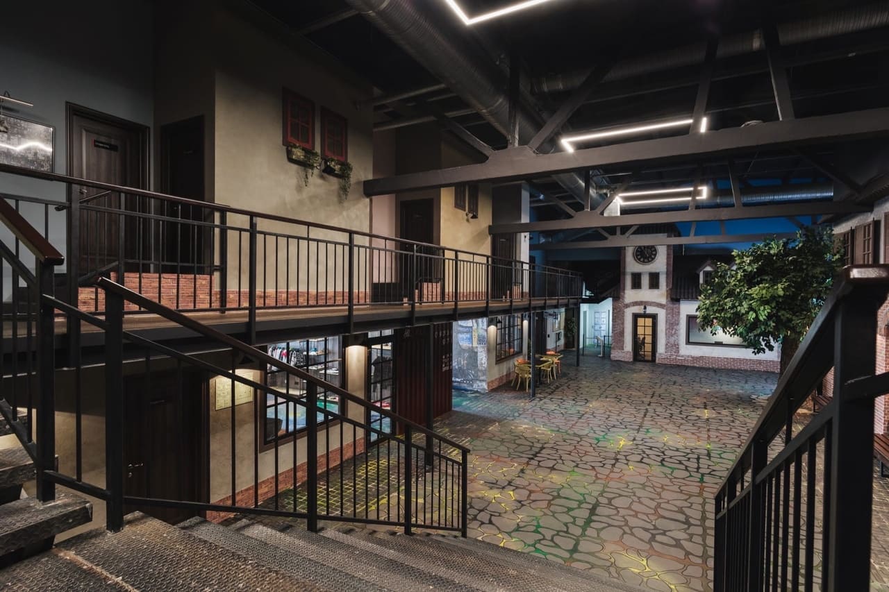Атриум в стиле лофт напоминает улочку европейского города